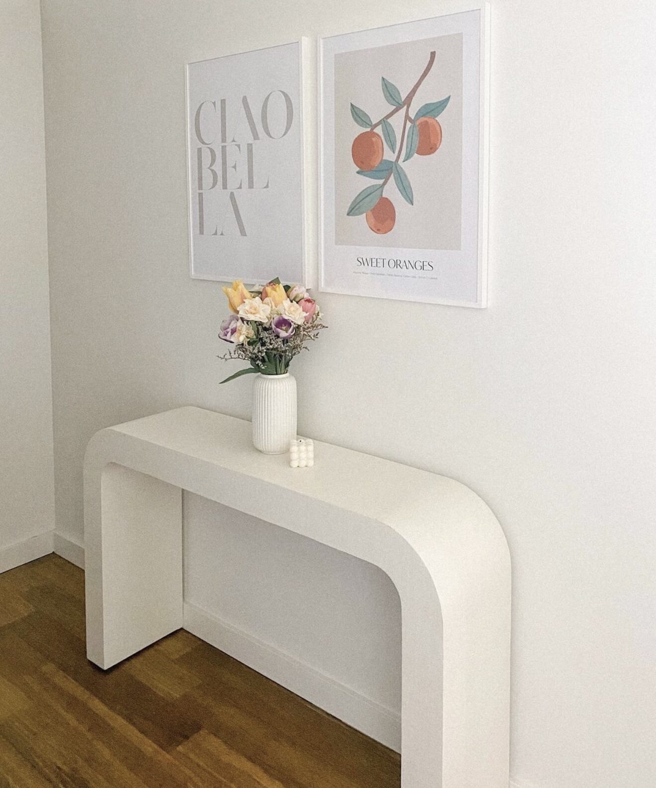 A clean sculptural console with rounded edges that brings subtle modern elegance to any space.