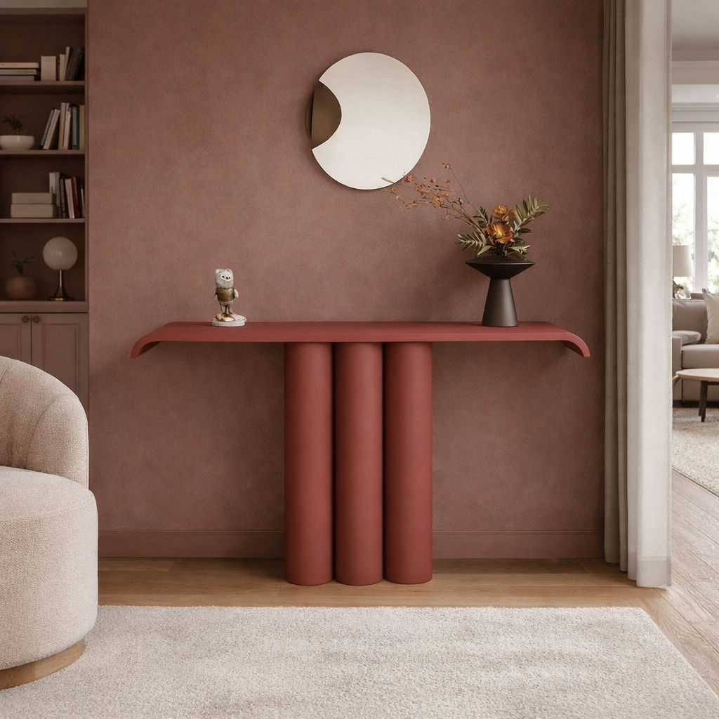 A warm-toned console with sculptural columns that brings depth and earthy elegance to any space.