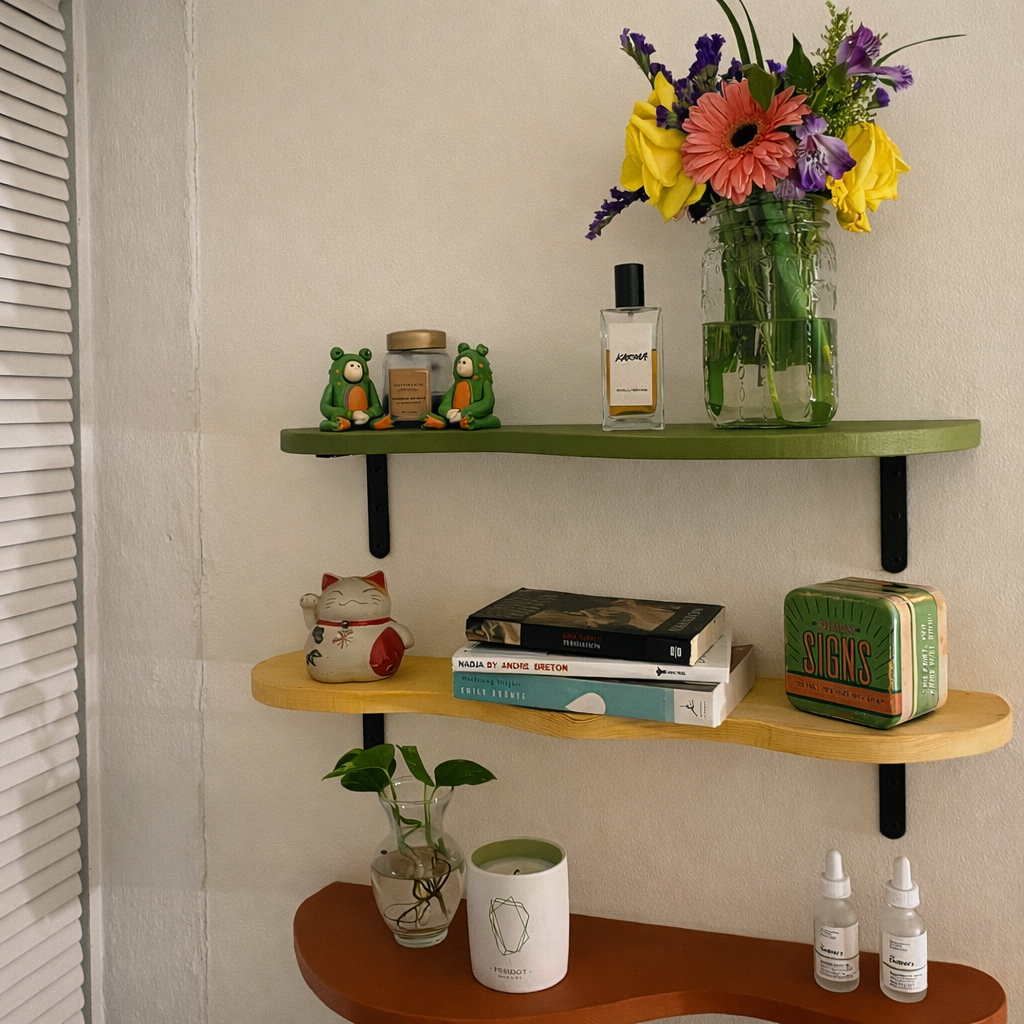 A set of organically shaped wall shelves.